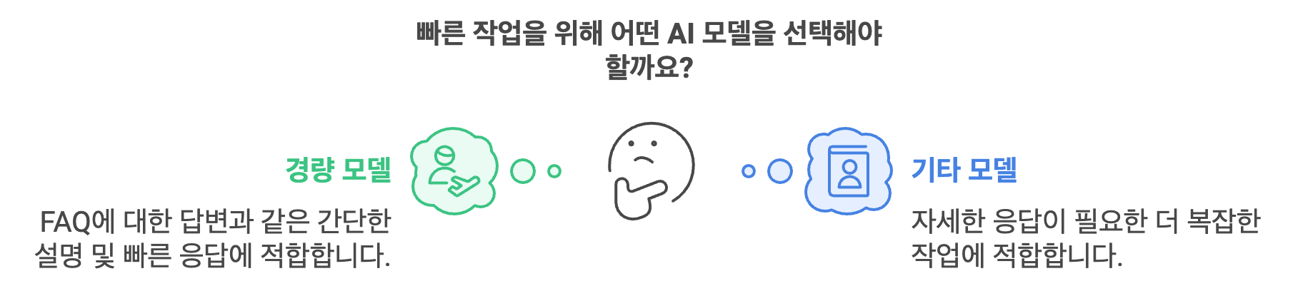 최적의 모델을 선택하기 위해서는 주어진 작업의 복잡성, 응답 속도, 비용 효율성을 고려해야 합니다. 간단히 정리하면 다음과 같습니다.